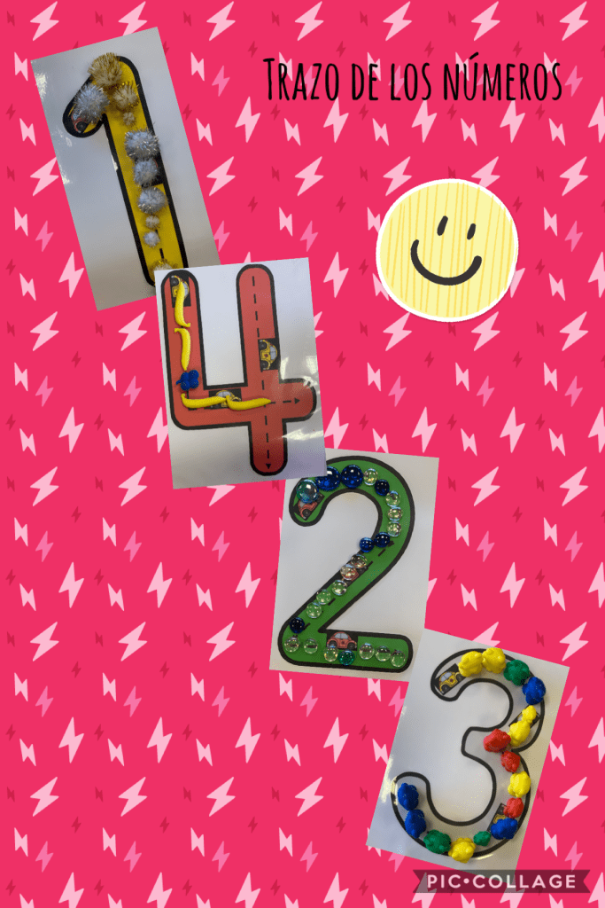 Para realizar la GRAFÍA DE LOS NÚMEROS que estamos aprendiendo, lo estamos haciendo de diferentes maneras (con churritos de plastilina, almendras, con pompones, con ositos…). Tampoco nos olvidamos de hacerlo sobre papel para que afiancen la motricidad fina, coger bien el lápiz, etc.