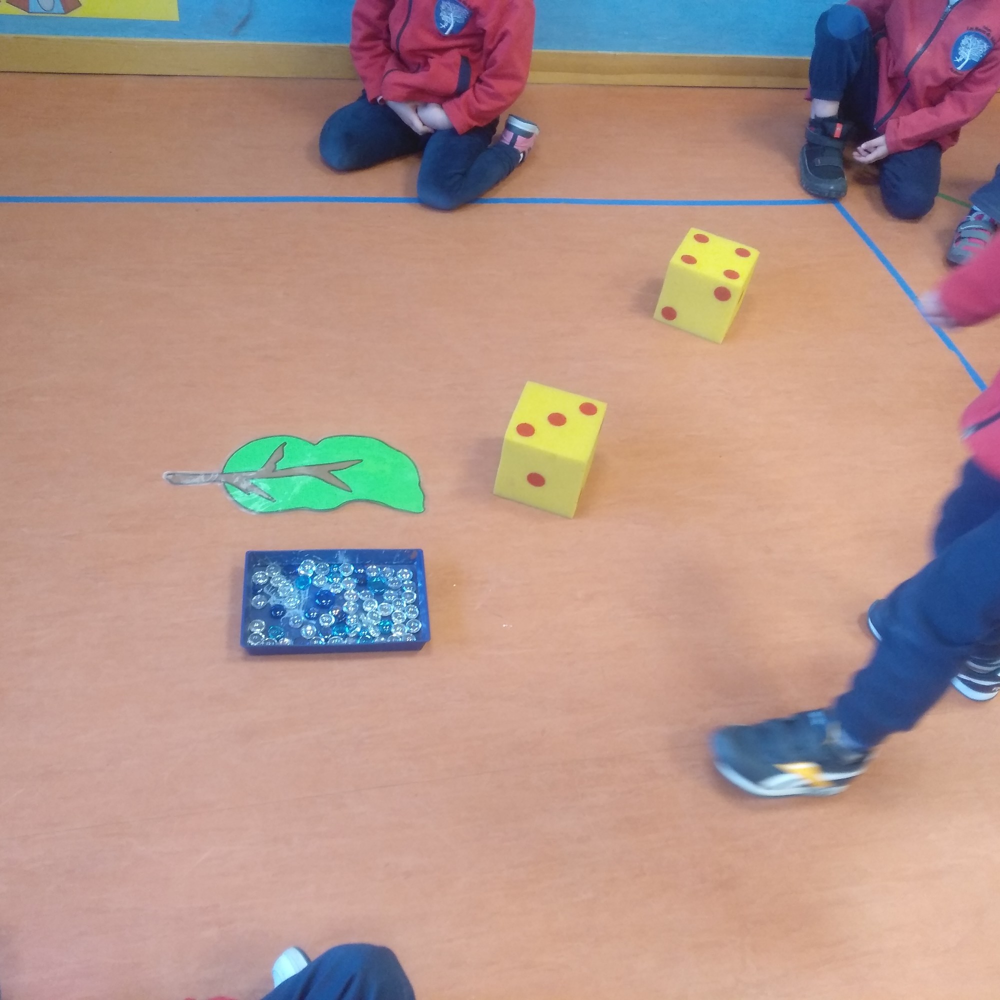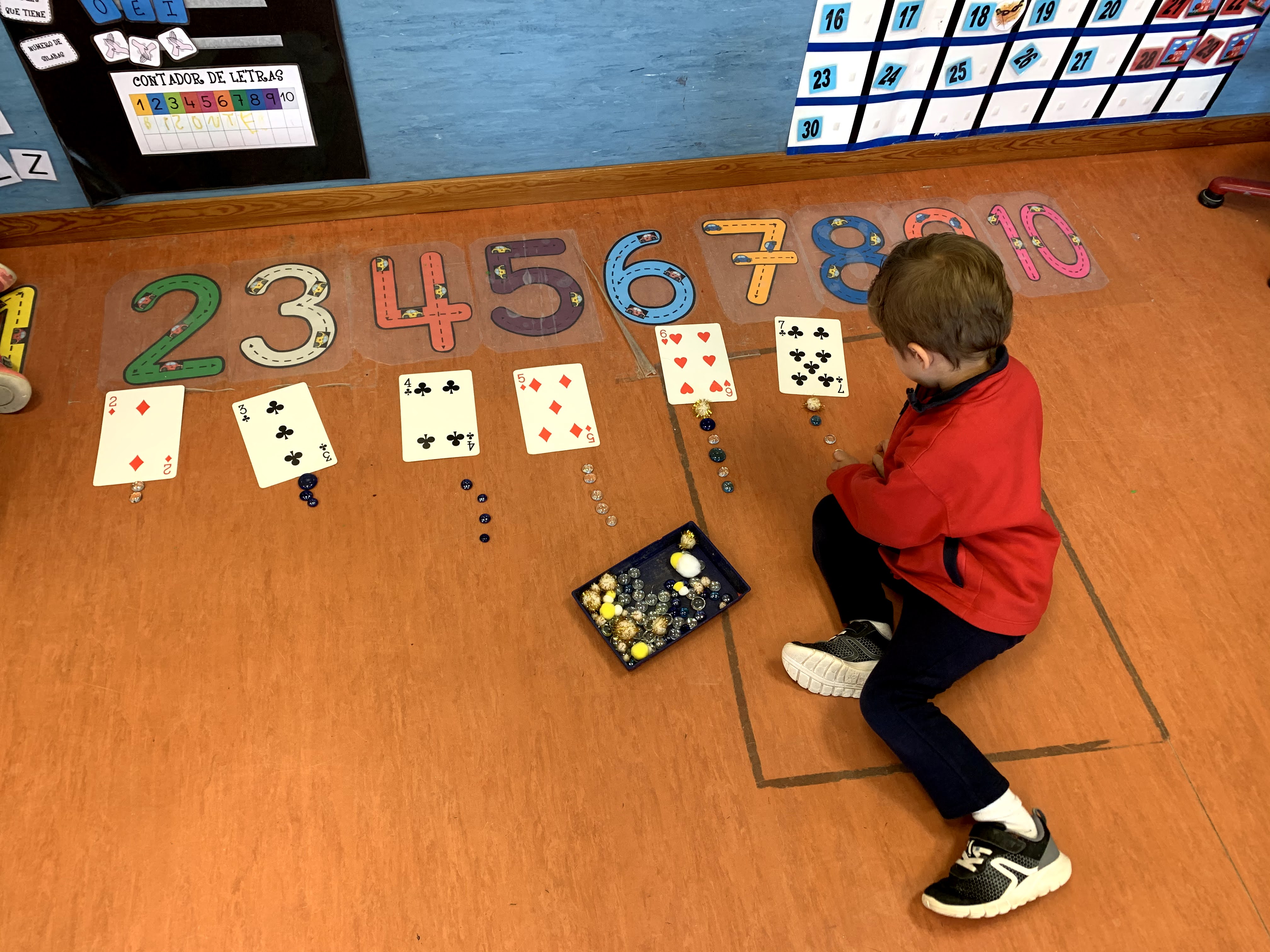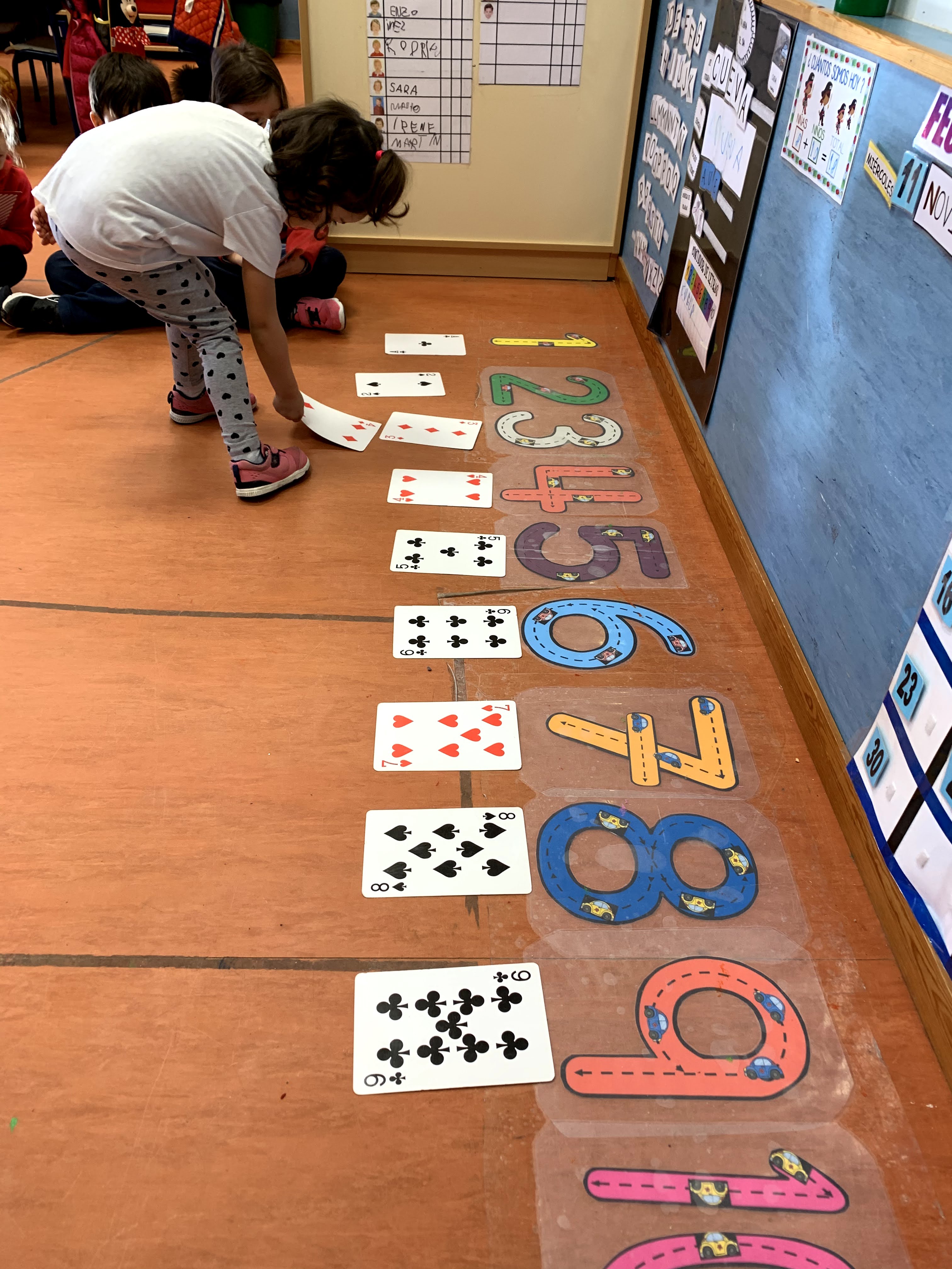 En las fotos que veis a continuación estuvimos repasándolos con ayuda de una baraja de cartas gigante y de piedrecitas.