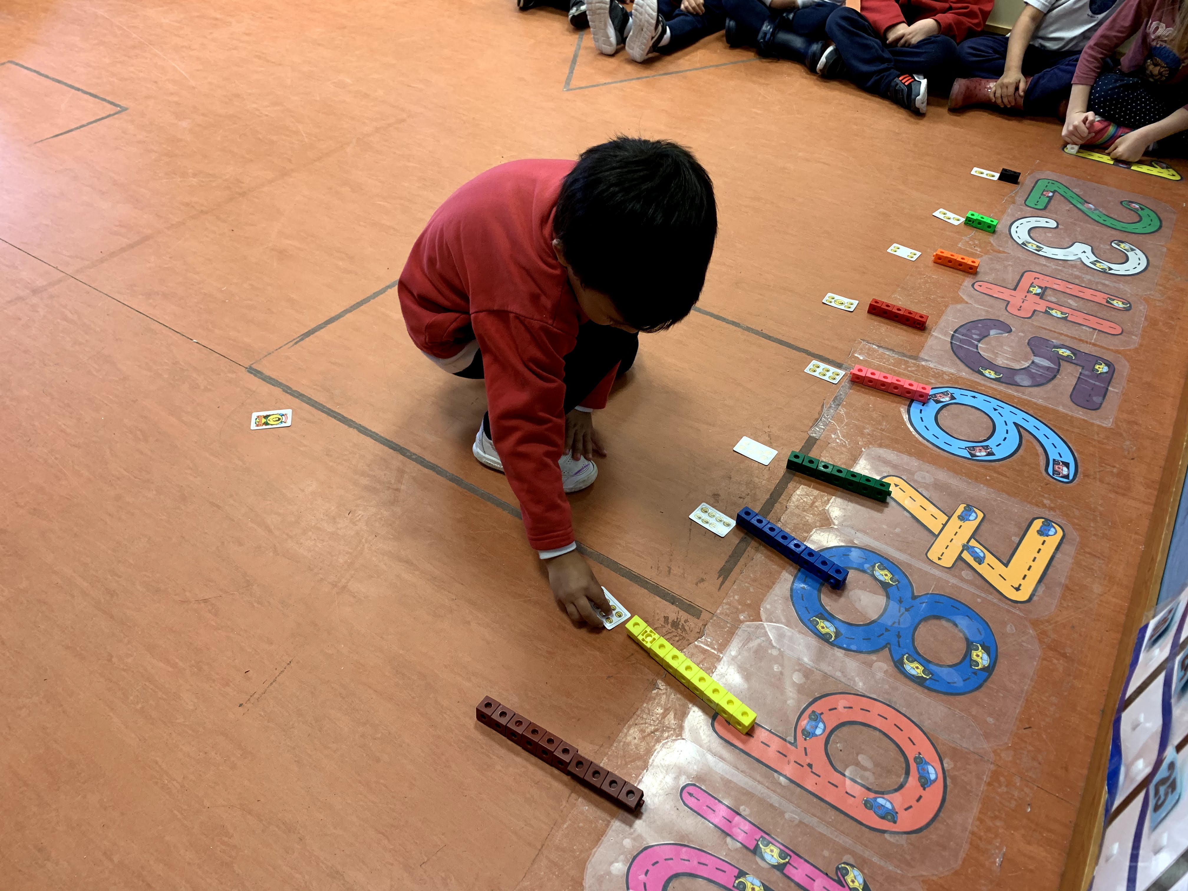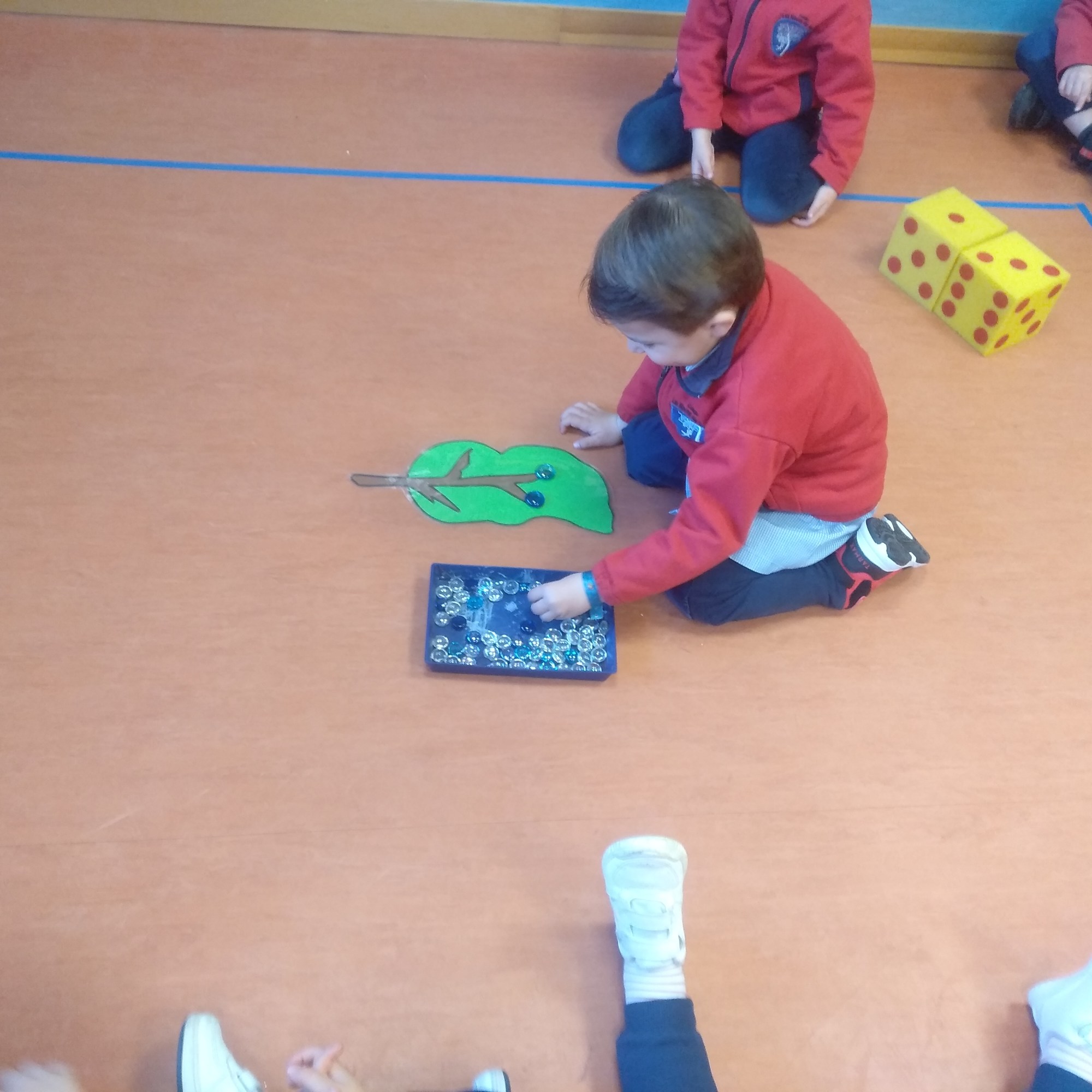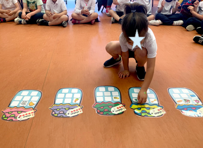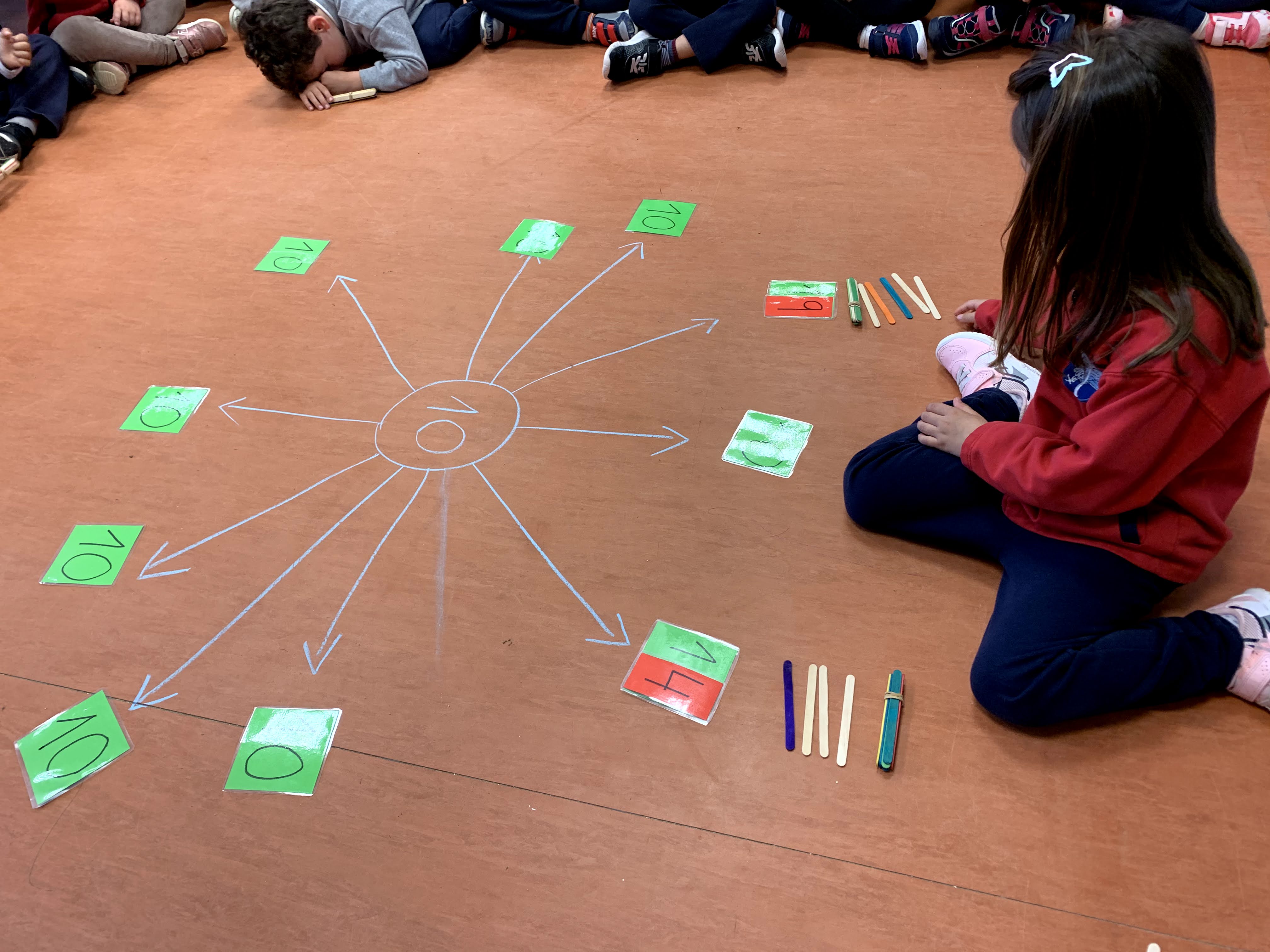 En las fotos que veis a continuación estuvimos repasándolos con ayuda de una baraja de cartas gigante y de piedrecitas.