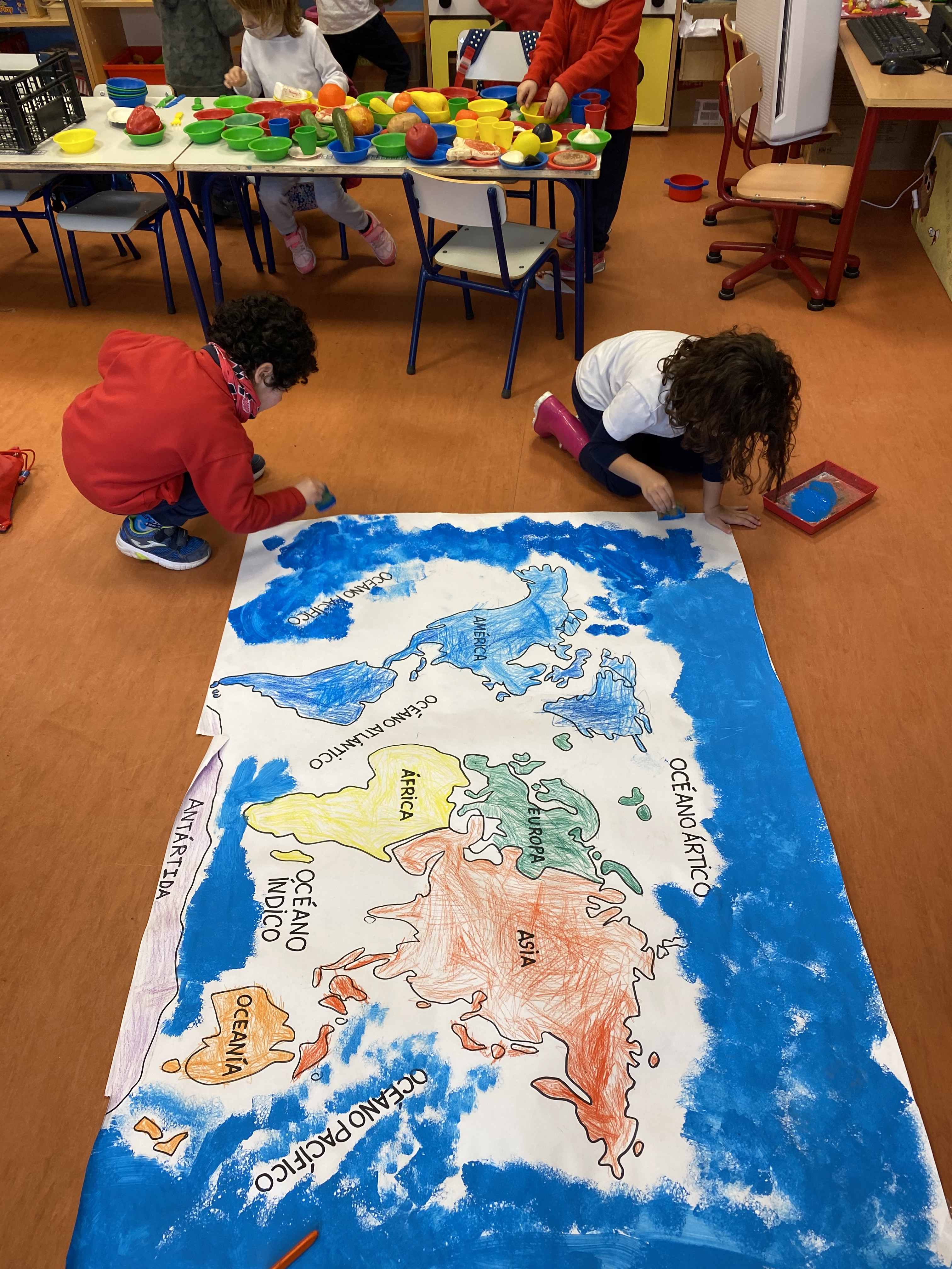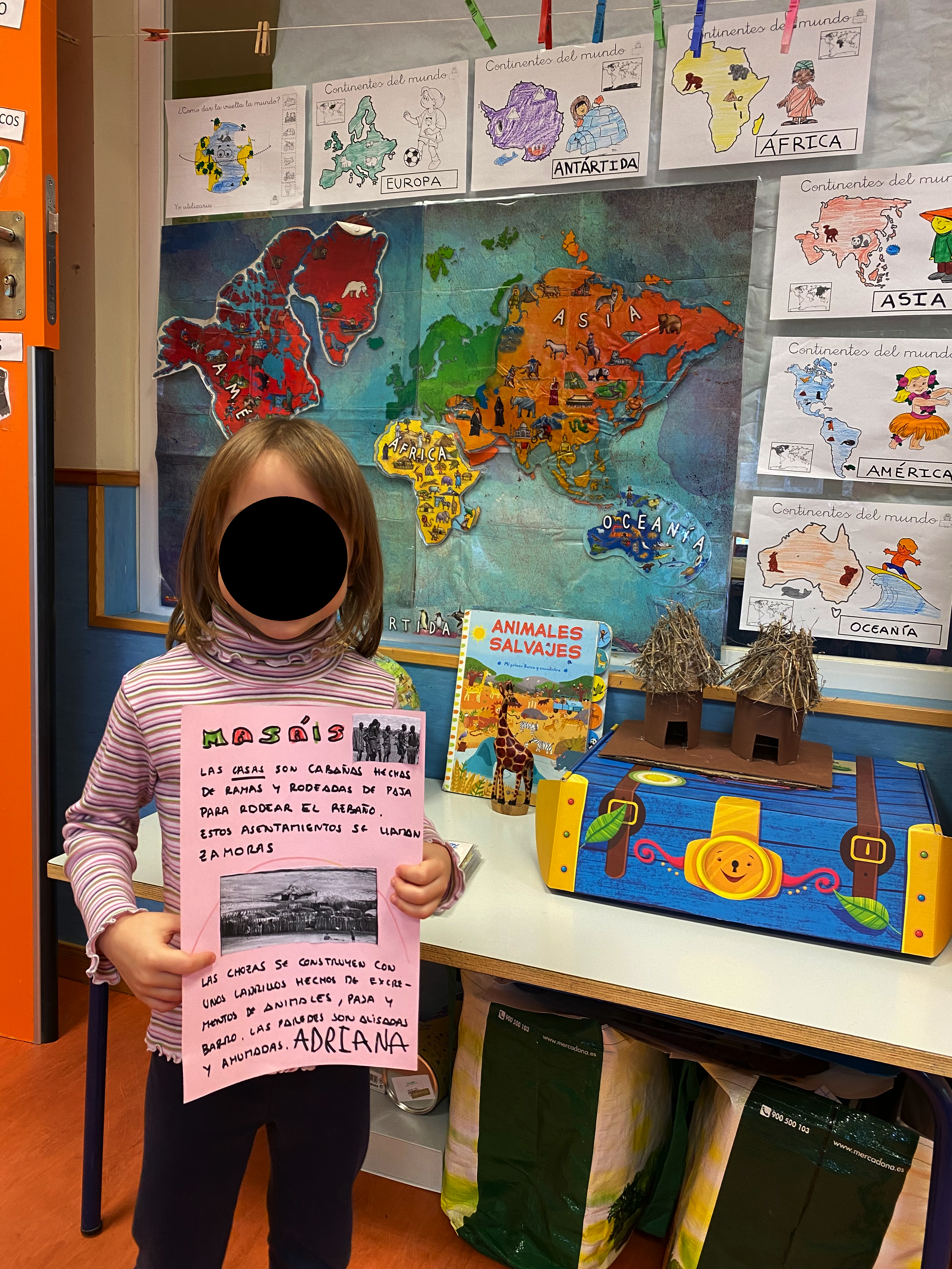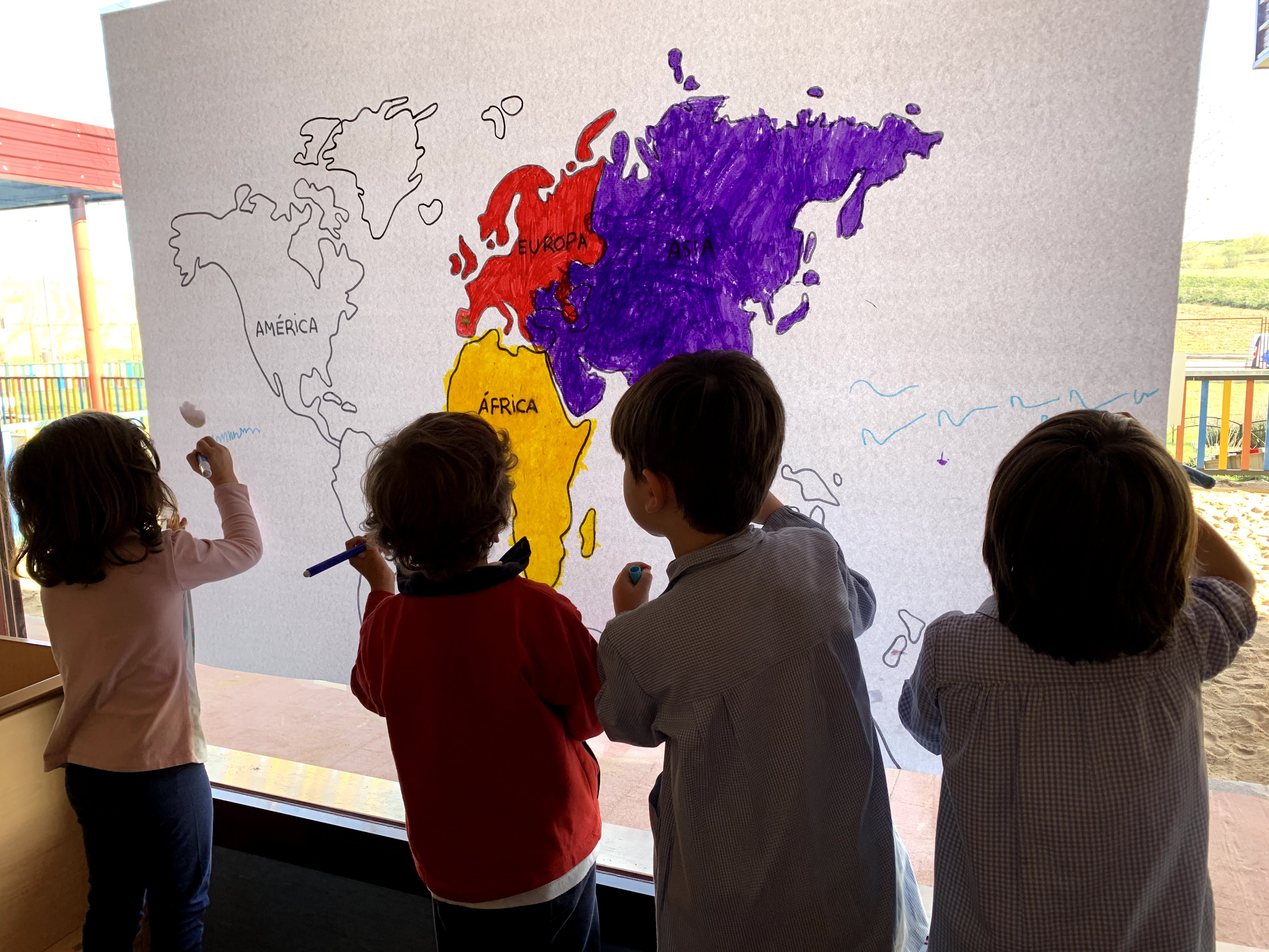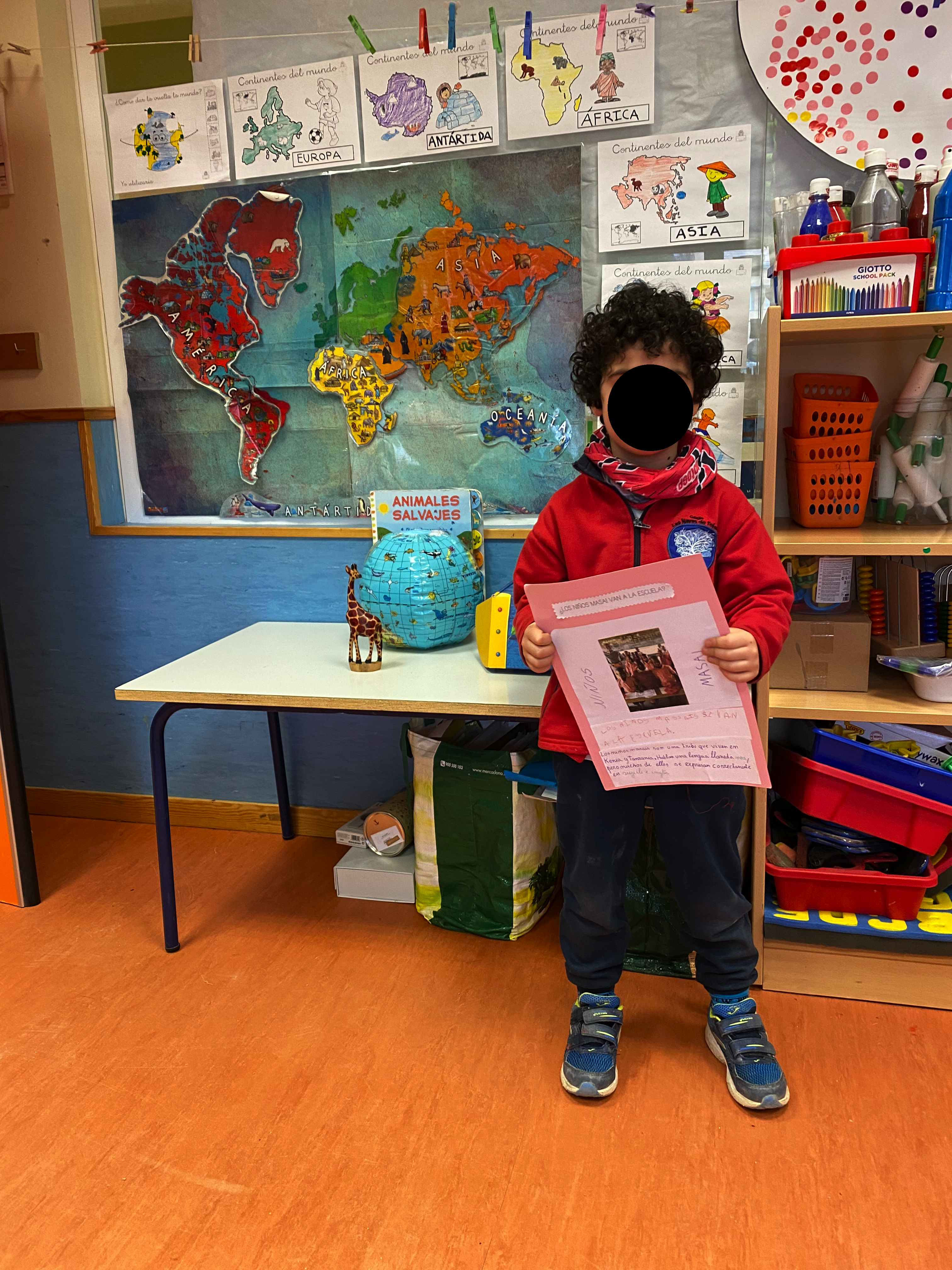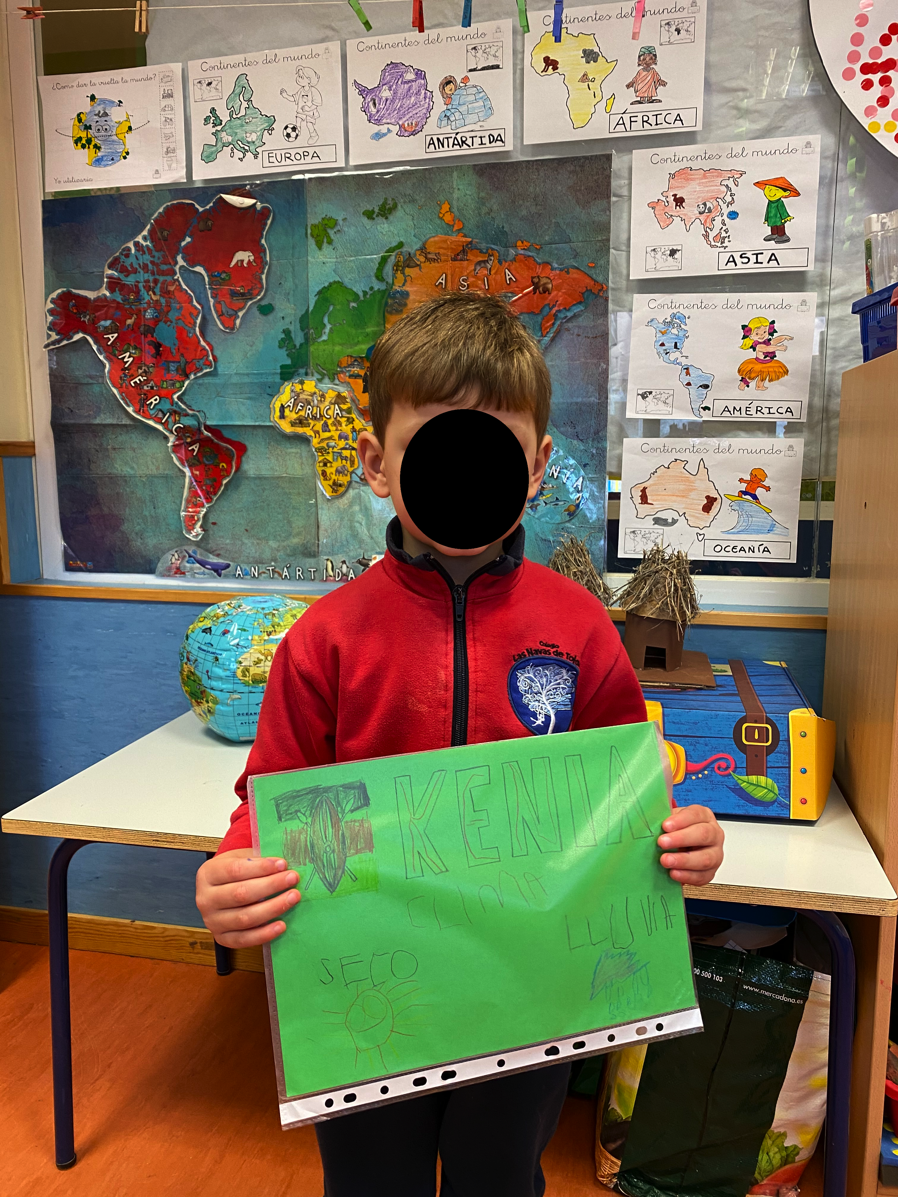 Este año, como no podemos viajar físicamente, hemos decidido recorrer el mundo con ayuda de nuestra imaginación para conocer diferentes países. Para orientarnos mejor y conocer los continentes que componen nuestro planeta, hemos elaborado un mapa mundi donde poder señalar los lugares que visitemos. También, contamos un un globo terráqueo donde poder verlos. ¡Estamos muy emocionados!