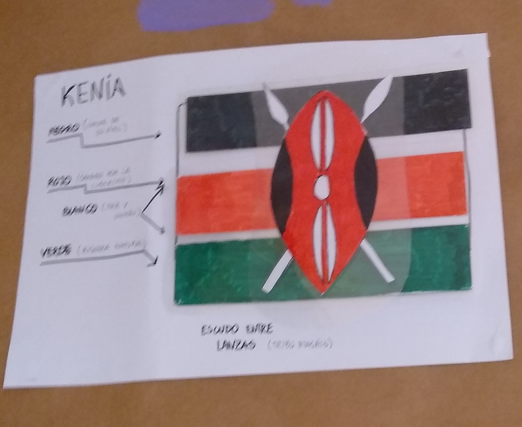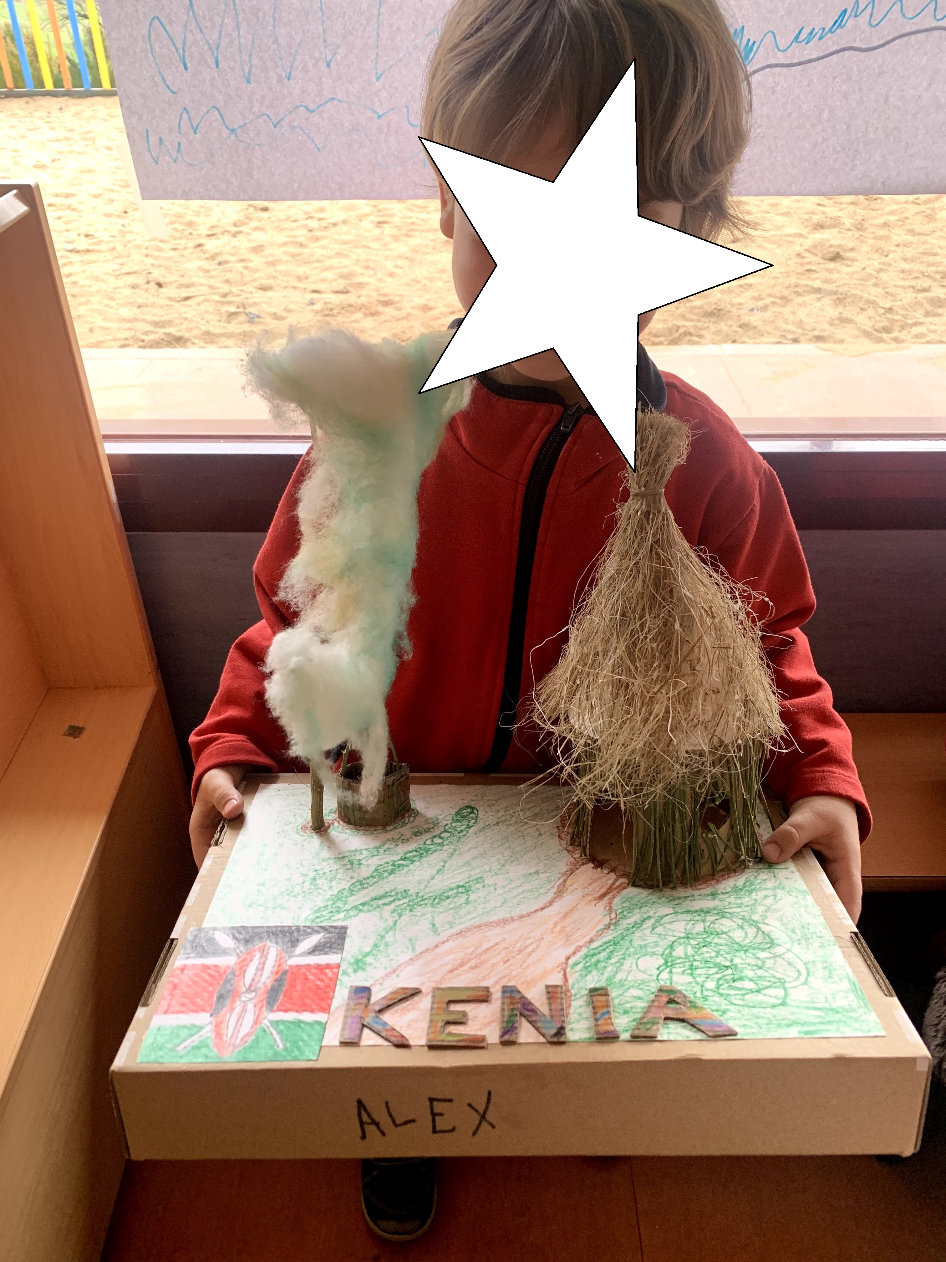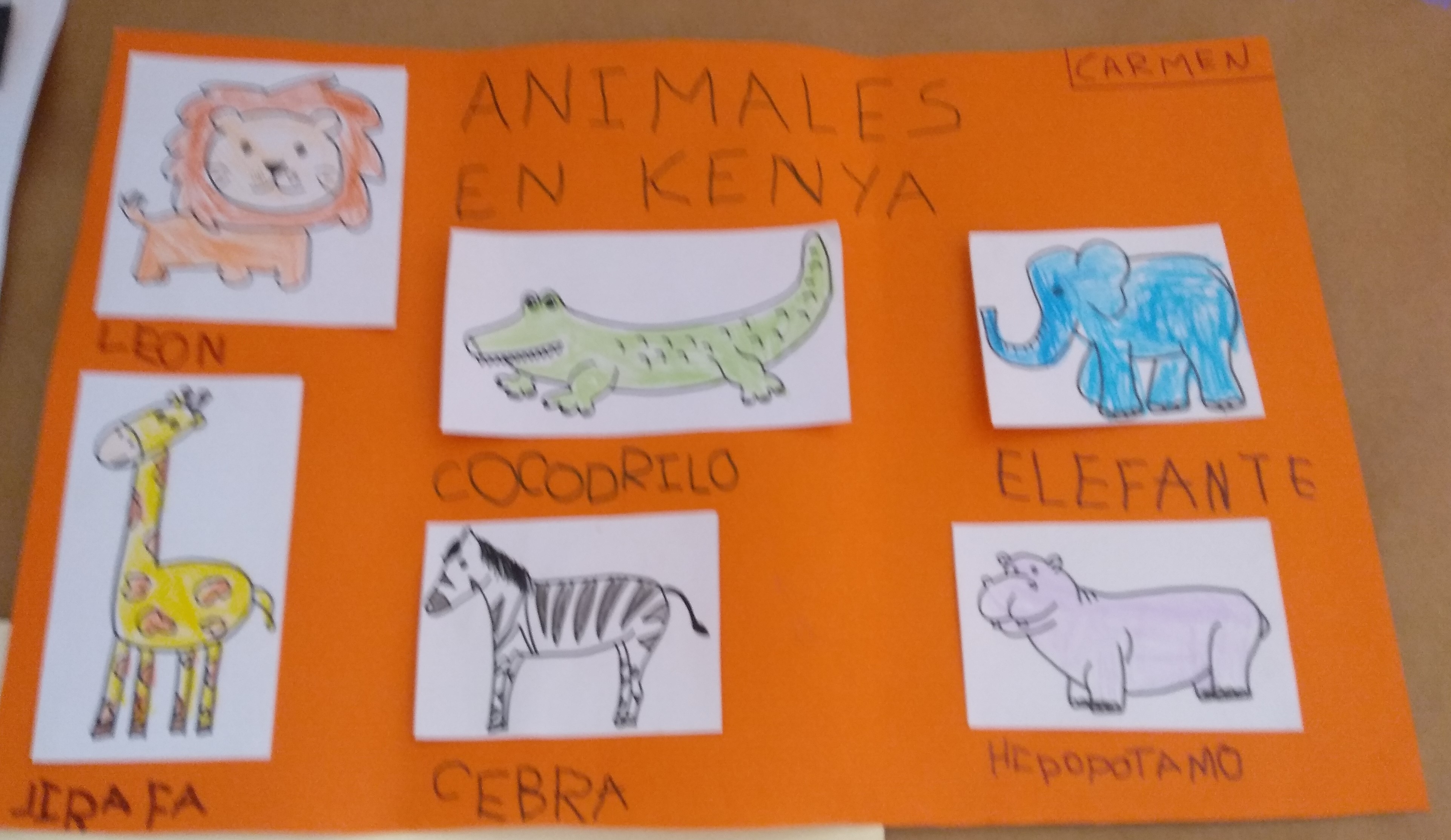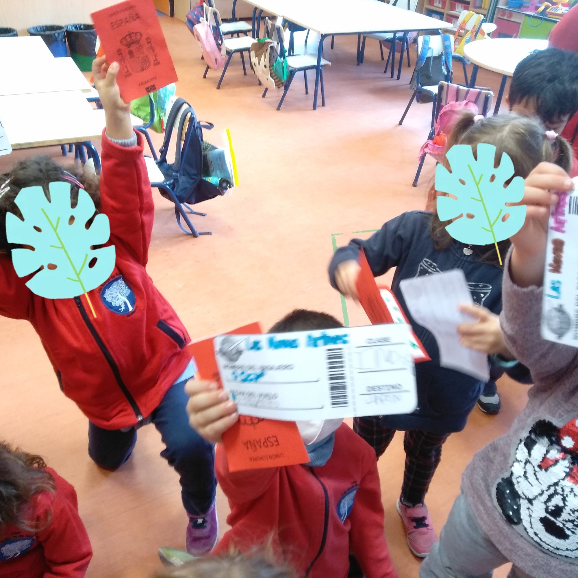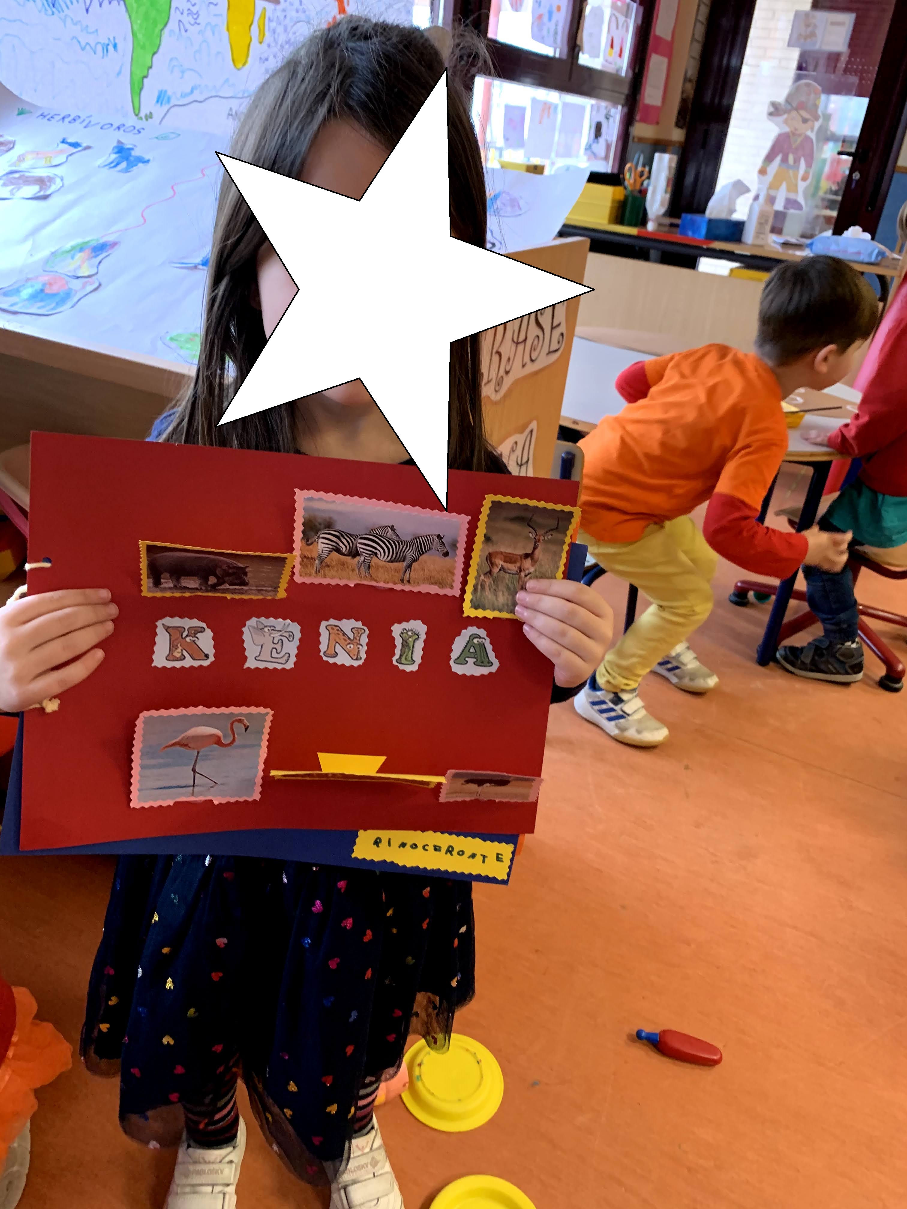 Colocamos la clase para la ocasión, hicieron una fila «documentación en mano» para poder acceder a la puerta de embarque y tras las indicaciones de las azafatas (les resultó muy gracioso ver a sus profes metidas en el papel de azafata) volamos rumbo al continente africano con sonido de avión despegando incluido. Al llegar a Kenia tuvimos que buscar por la clase a un niño africano (una marioneta) que nos estaba esperando para mostrarnos su país. A continuación, escribieron KENIA en su pasaporte y se pegaron un sello de entrada al continente africano.