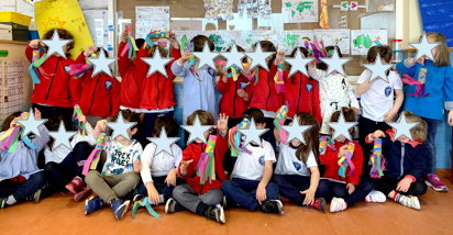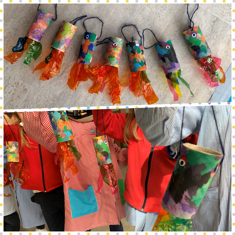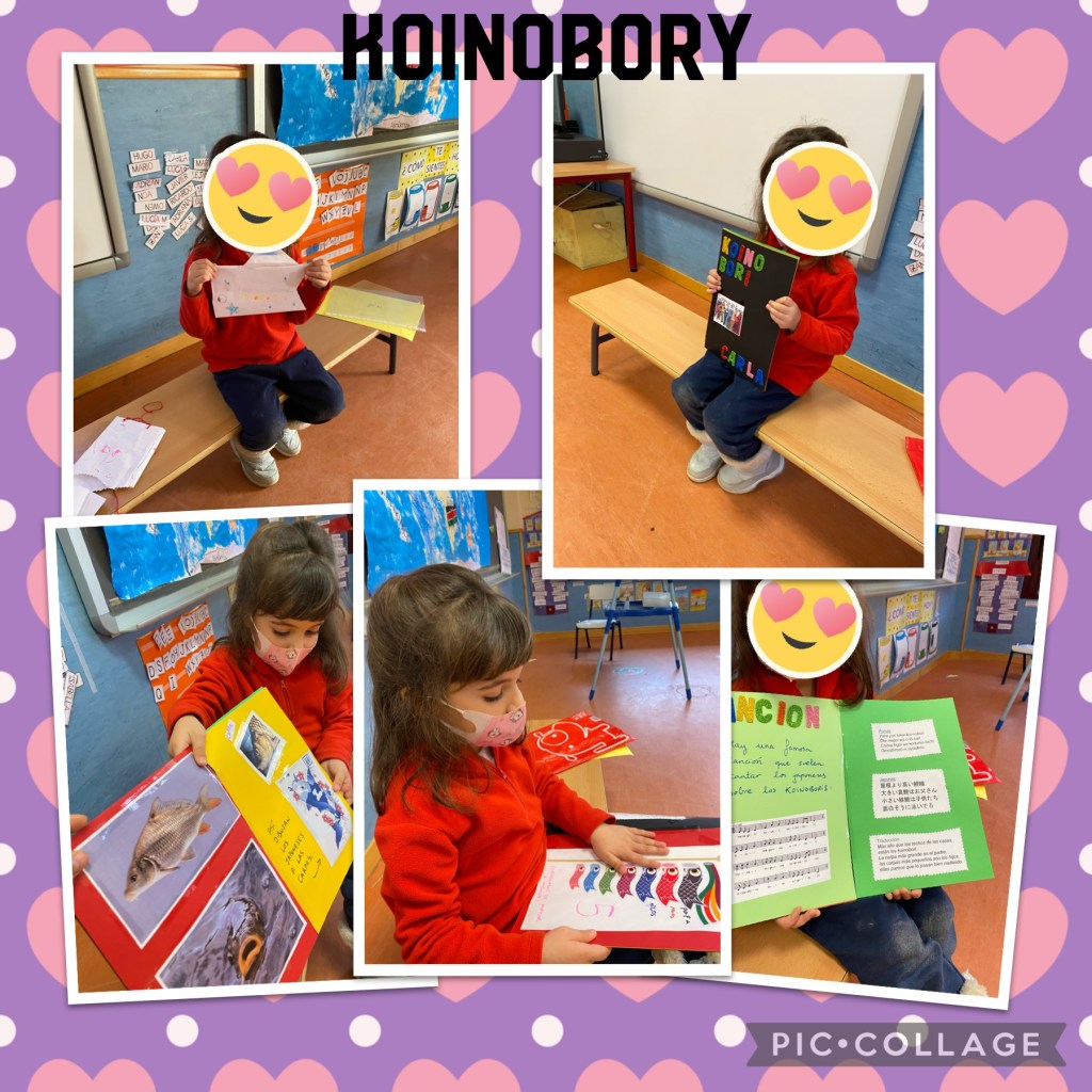 Hemos realizado nuestras propias cometas Koinobori, como hacen los japoneses para celebrar «El día de los niños», así de preciosas nos han quedado y así de bien hemos trabajado.