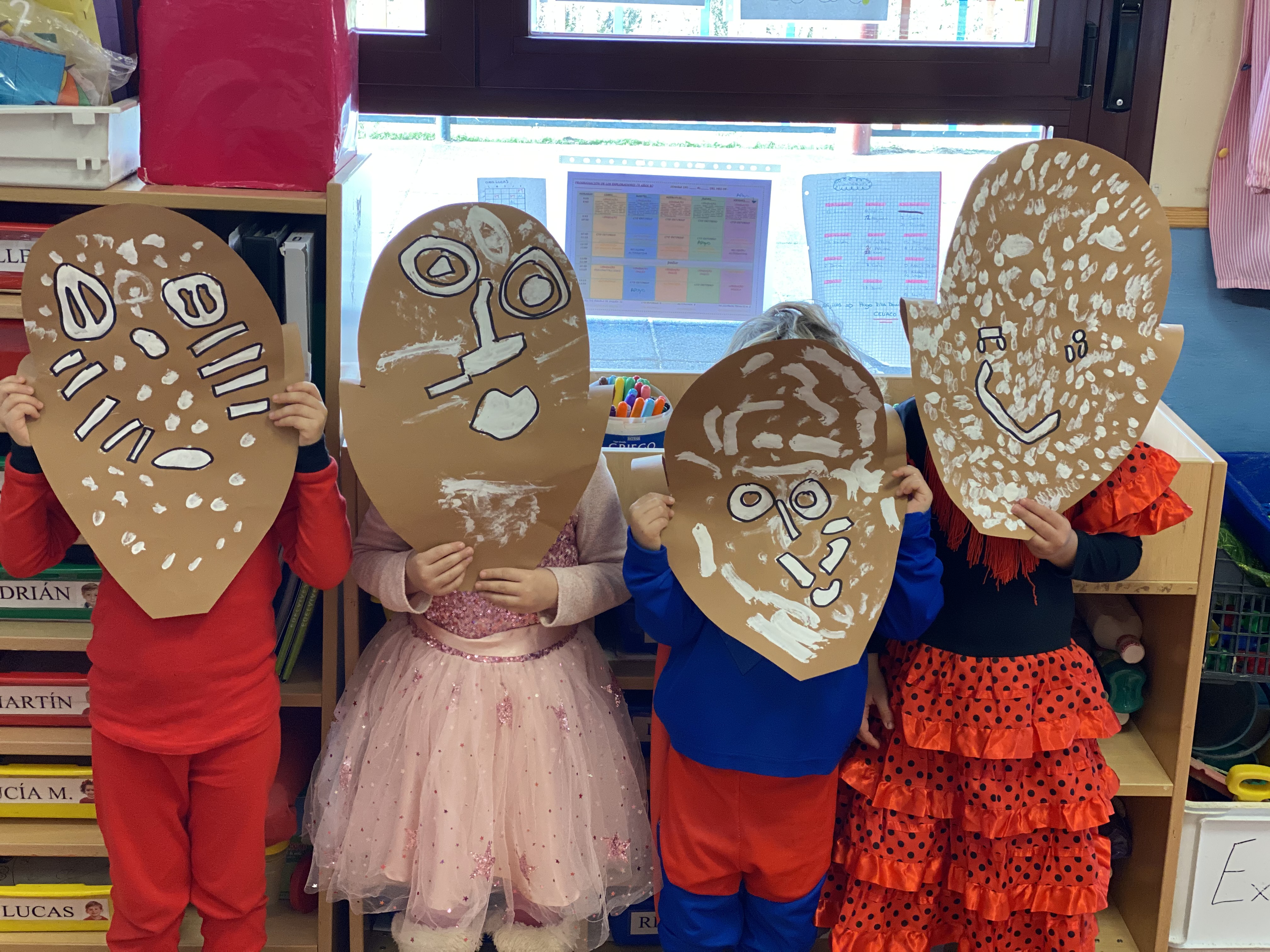 Otra actividad que ha motivado mucho a nuestros peques ha sido hacerse su propia máscara africana: