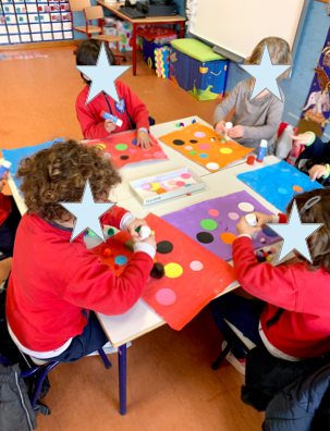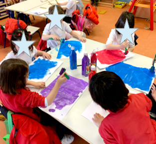 Comenzamos el proyecto explicando la creación del UNIVERSO con el famoso BIG BAN y lo quisimos reproducir en cartulina simulando la explosión con papel mojado en témpera. Los niños tenían que lanzarla al suelo como si explotase y se lo pasaron pipa haciéndolo.