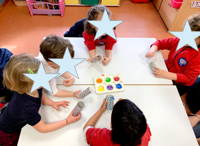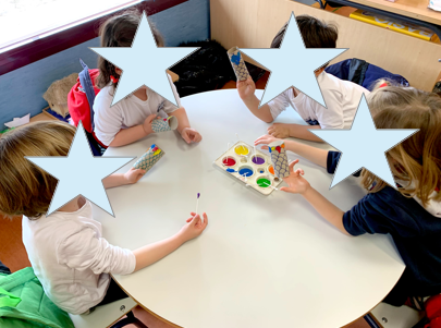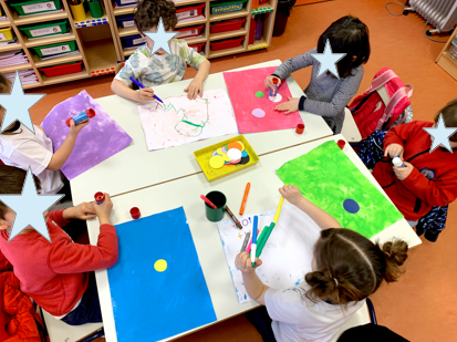 Cada peque eligió una constelación (CASIOPEA, OSA MENOR, OSA MAYOR u ORIÓN) para colorearla y luego repasarla con pintura fluorescente. Después, apagamos las luces y con ayuda de una luz negra…¡MAGIA!