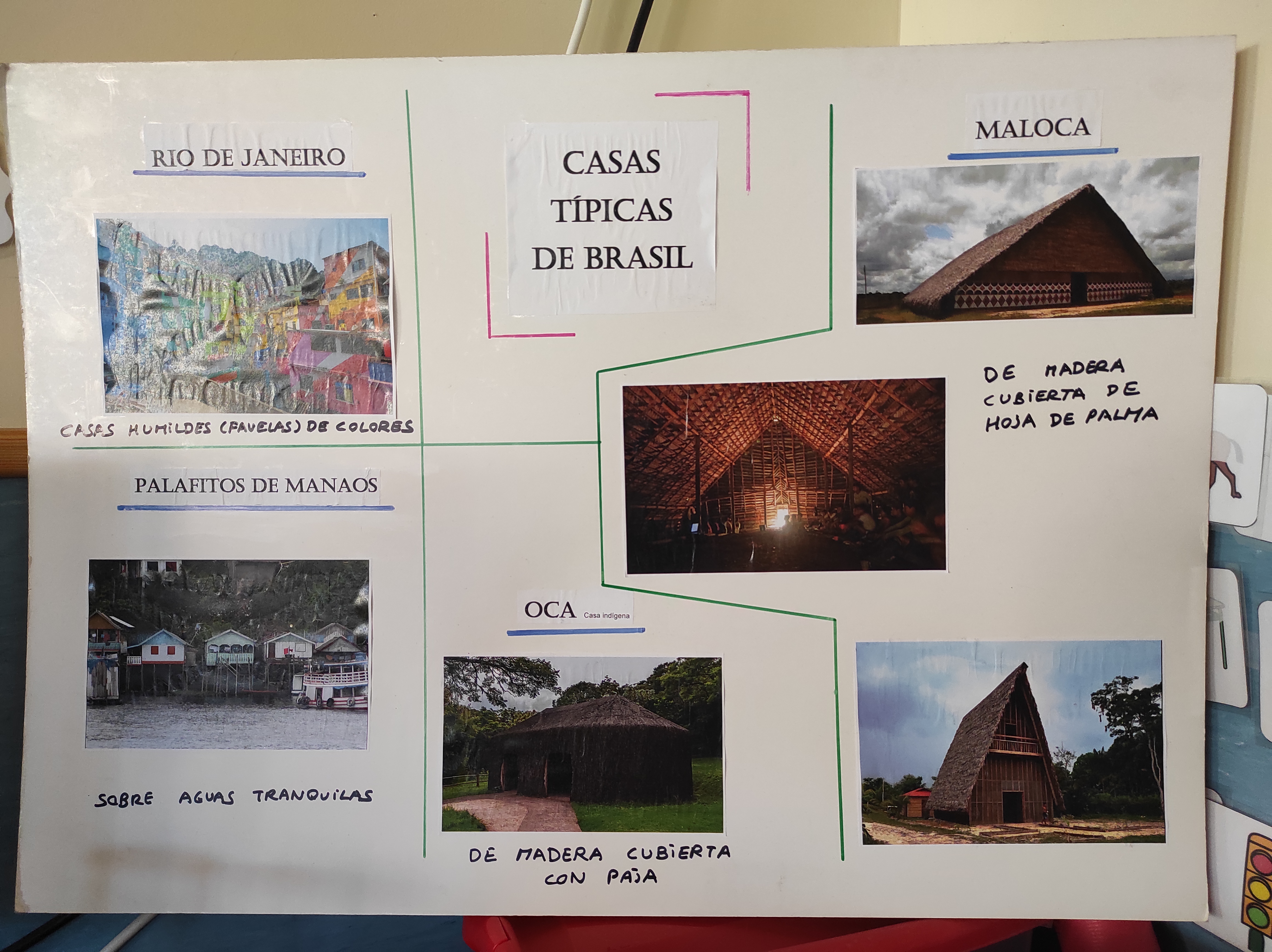 Descubrimos que en Brasil hay gente que vive en unas casas de colores que se llaman FAVELAS:
