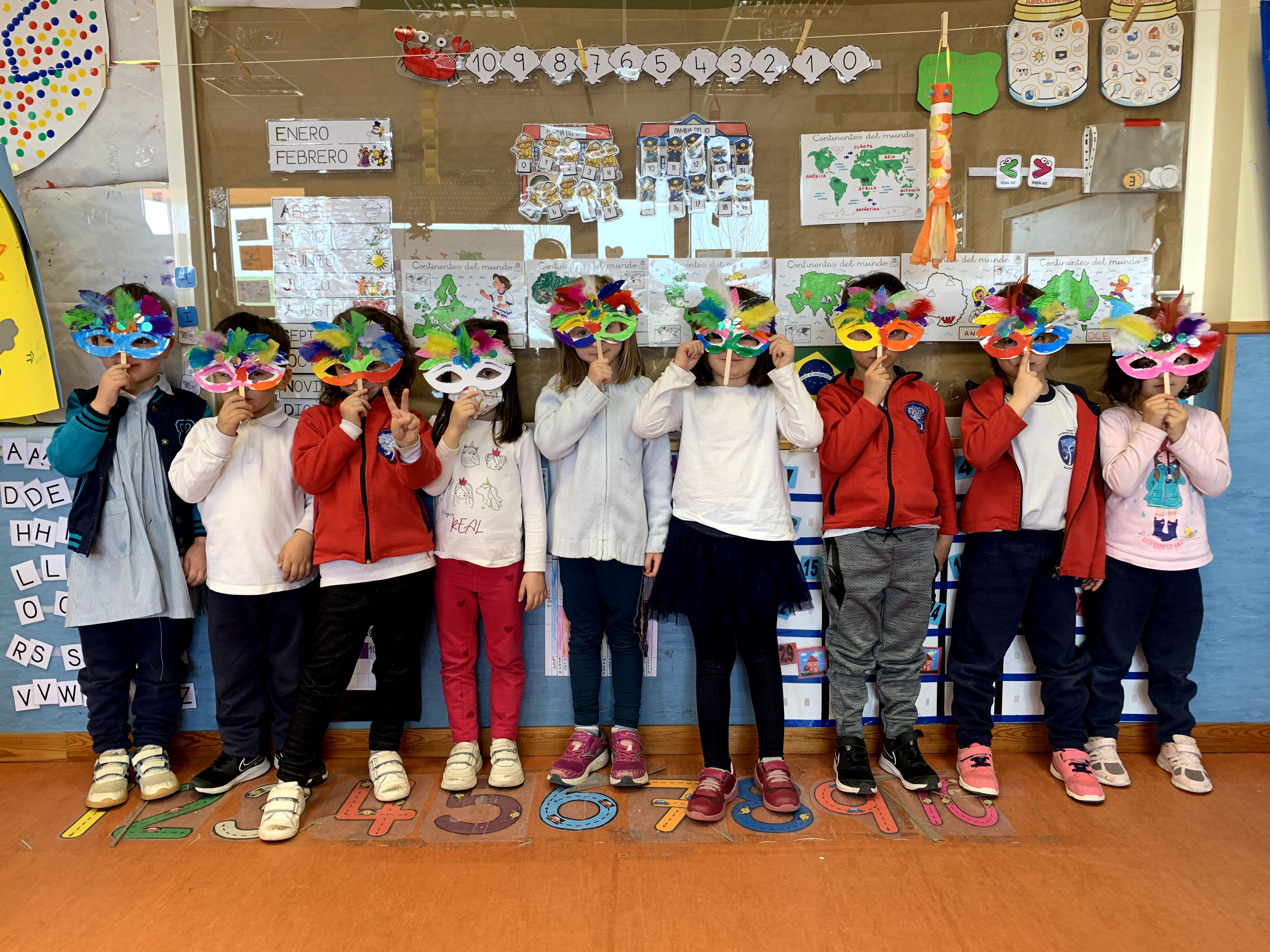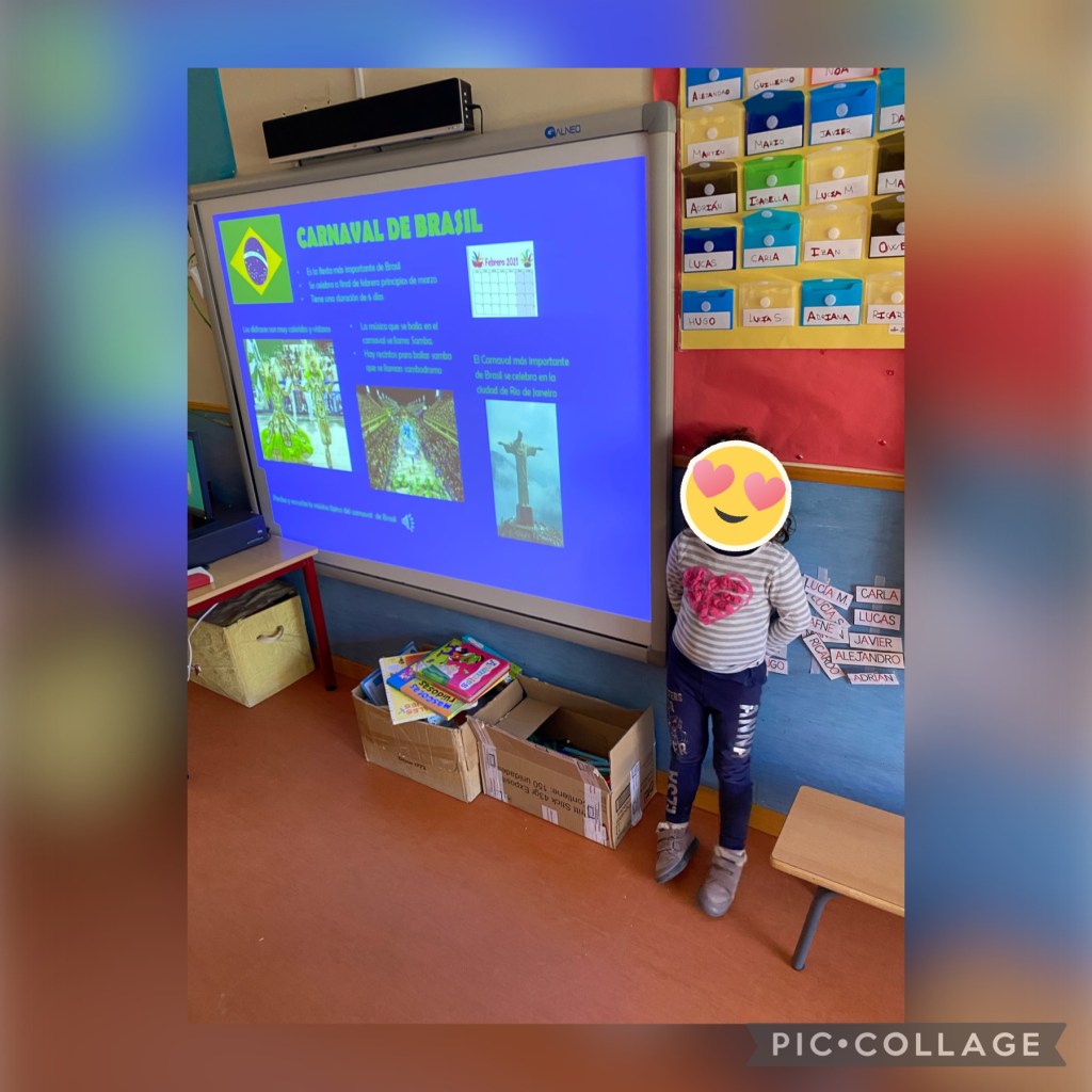Bailamos al ritmo de la samba a la vez que aprendimos algunas cosas sobre los famosos CARNAVALES de Brasil y nos hicimos una máscara bien cargadita de plumas para la ocasión.