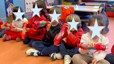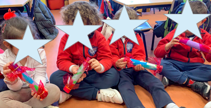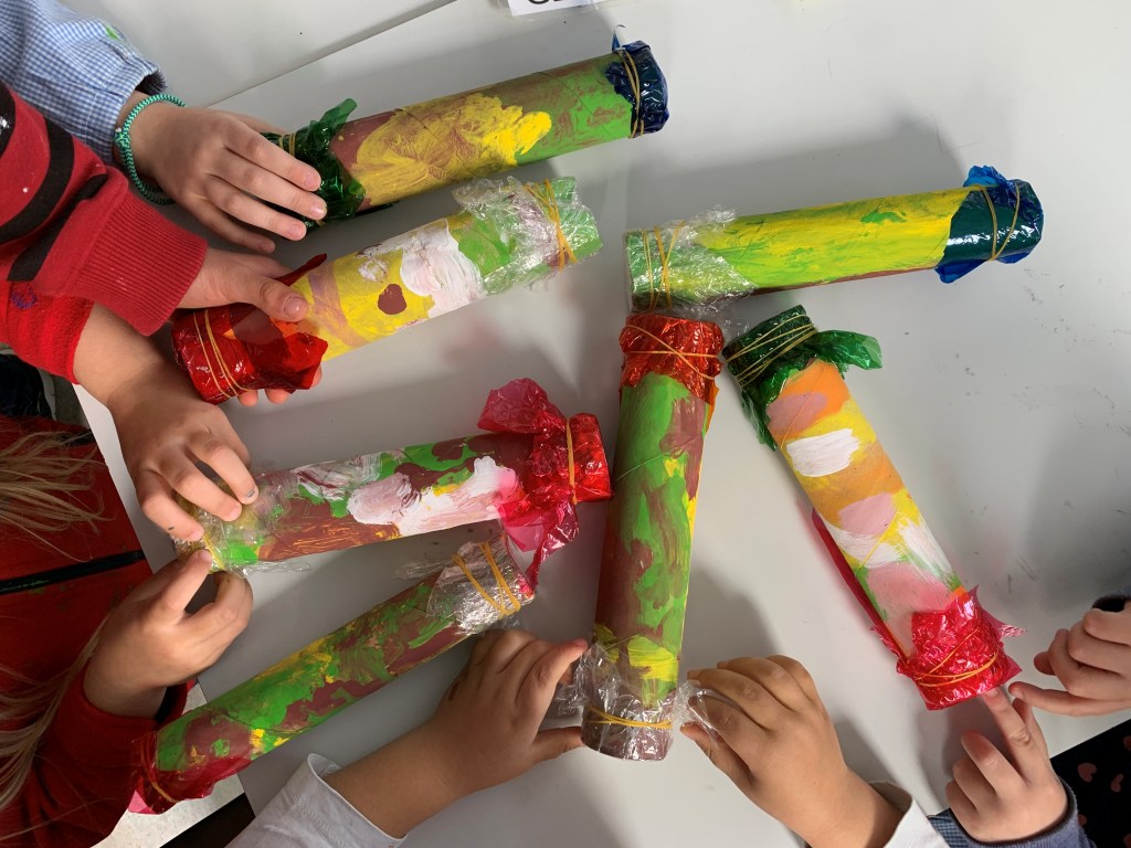También, descubrimos que el PALO DE LLUVIA es un tubo largo con huecos relleno de semillas y su origen se remonta a los pueblos indígenas de la amazonía sudamericana. Se utilizan para crear canciones muy bonitas y nosotros hemos fabricado unos para hacer nuestras propias melodías.