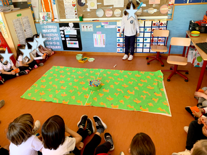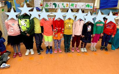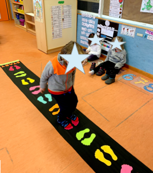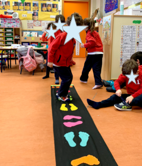 Con esta súper alfombra de huellas que nos prestó la profe de apoyo Kebia estuvimos trabajando la orientación espacial. ¡Fue súper divertido!