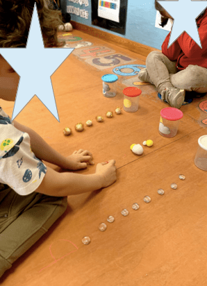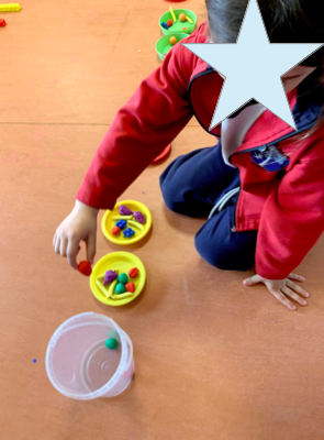 Para asociar el número a la cantidad, jugamos con las cartas de números boca abajo, las distribuimos por el espacio y cuando descubren el número tienen que buscar las bolas que escondemos por la clase y poner al lado de la tarjeta tantas bolas como indica el número. ¡Les encanta!