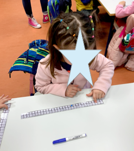 Siguiendo con la familia del 10, hemos trabajado con la recta numérica de manera individual. Contando todos en voz alta y señalando de uno en uno los números en la recta hasta que la profe dice STOP, entonces todos han de señalar con el rotulador el número donde se han parado y comprobar si éste corresponde con el que había dicho la profe. Escribimos en la pizarra el número para que los peques comprueben si lo han hecho bien, sino borramos y señalamos el número correcto.