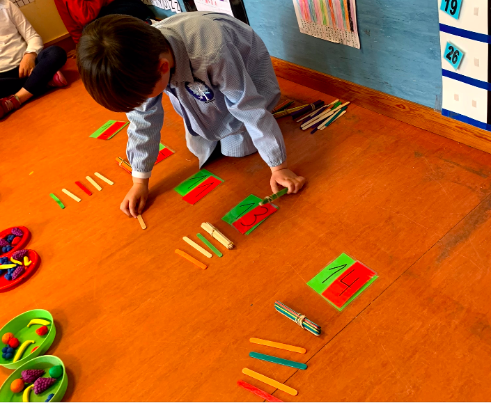 Estamos aprendiendo de forma manipulativa a descomponer los números, esto nos va ayudar mucho a tener una mayor dominio de los números y sus cantidades, a estructurar nuestro pensamiento lógico y a iniciarnos en la suma. La idea es este trimestre llegar hasta la casita del 10.