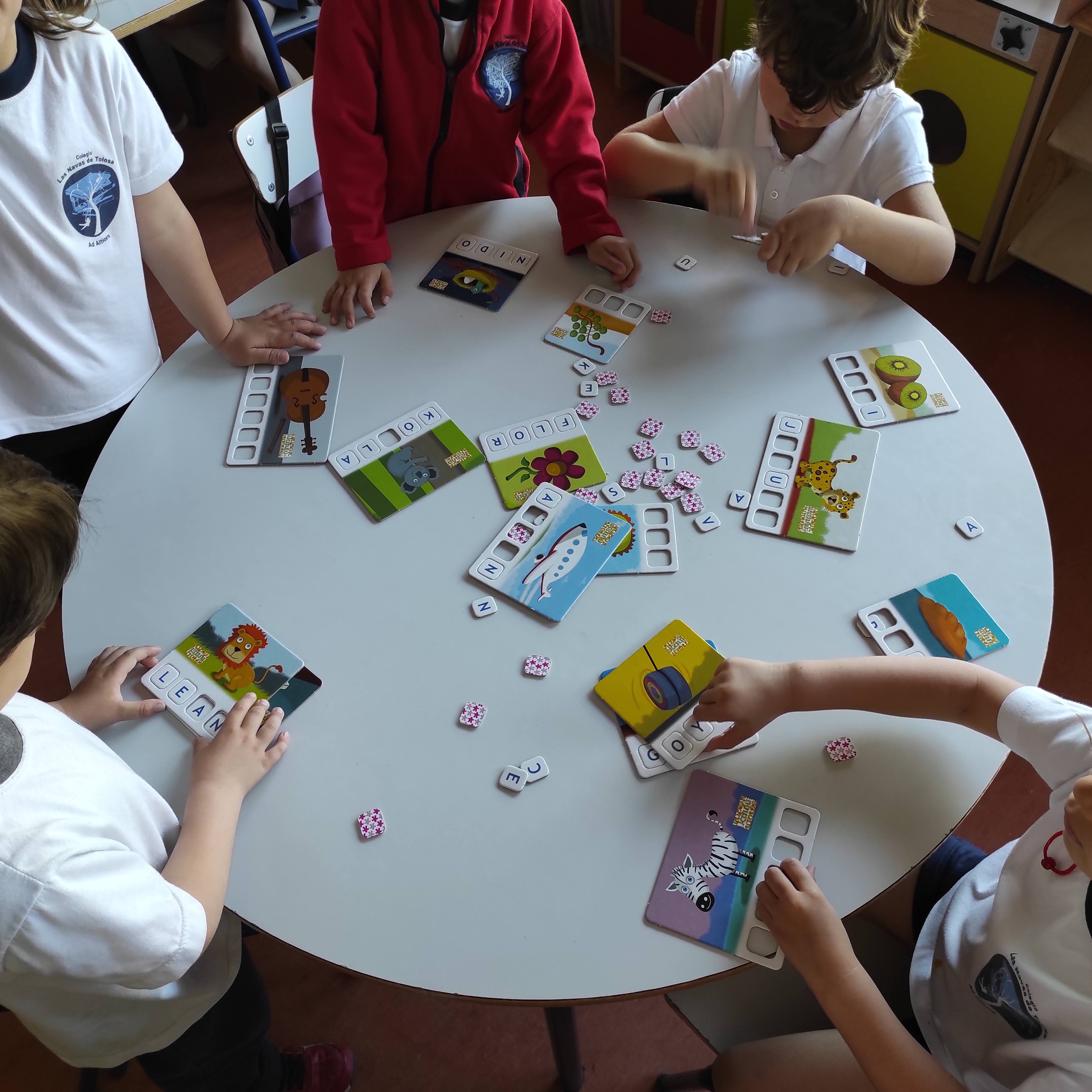 Se trata de un juego en el que aparece una tarjeta con una imagen y unos huecos para escribir su nombre debajo letra por letra.
