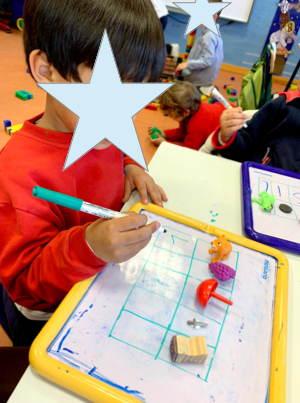 Porque ellos los llaman así, y les encantan. Con ellos hacemos series, dibujos libres, dibujos con la pauta… y sin darse cuenta están trabajando la situación espacial, que tan importante es en un futuro para el proceso de lecto escritura.