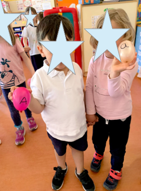 Como ya os contamos hemos empezado a trabajar en clase las vocales en minúscula. Este sencillo juego consiste en bailar por la clase junto con un globo en el que hay escrito una vocal en minúscula o en mayúscula. Al pararse la música los niños tenían que buscar a su pareja (a minúscula-A mayúscula, por ejemplo).