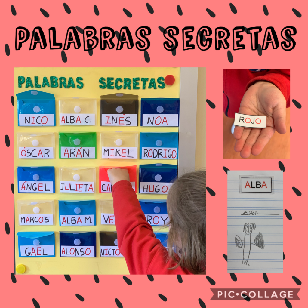 Se trata de un juego para trabajar la lectura global de palabras significativas y la escritura con modelo. Cada alumno tendrá un sobre en el que encontrará la “palabra secreta” que le ha tocado. Primero, hablando con su equipo tendrá que intentar adivinar qué pone en dicha palabra. Después, la pegará en la libreta de las palabras secretas, la copiará siguiendo el modelo y dibujará la palabra que le ha tocado.